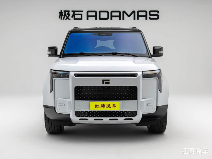 外观方面,极石ADAMAS延续极石01的设计风格,高大方正的车头很有气势,LED大灯怒视前方,而细节做出了些更新,比如大尺寸的前格栅两个改成了封闭样式,并采用与车身同色效果,格栅下部分加入了四孔元素,并新增“流沙金”配色。
